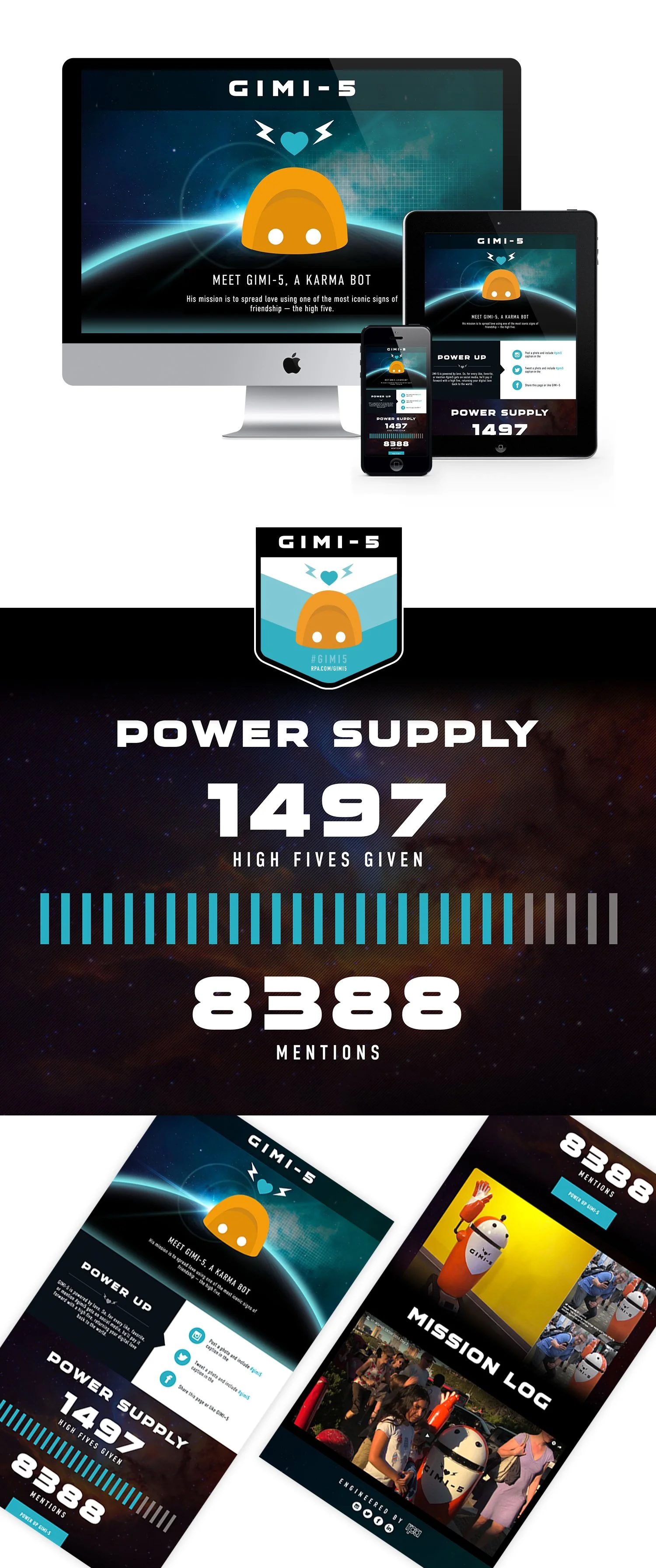 With social interaction consistently moving online, RPA wanted to remind people of the joys of real-world interaction, and, in turn, promote the agency’s human-centric approach to advertising. This inspired the creation of GIMI-5 – a karma bot that takes the love he receives online (via likes, shares, and mentions) and transforms it into real, physical expressions of affection by giving out high fives.